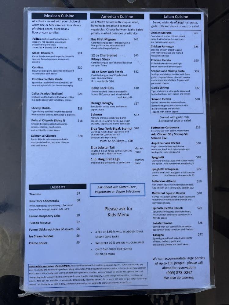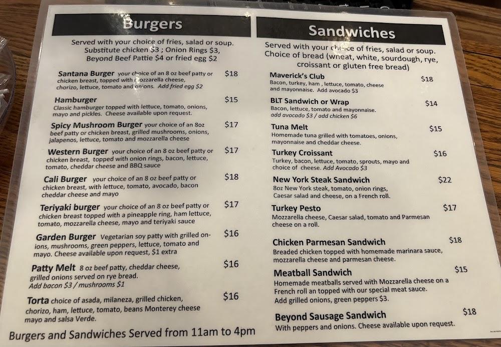 Santana Mavericks boasts a varied menu with 64 dishes ranging from American, Mexican, Italian, and Asian cuisines.
